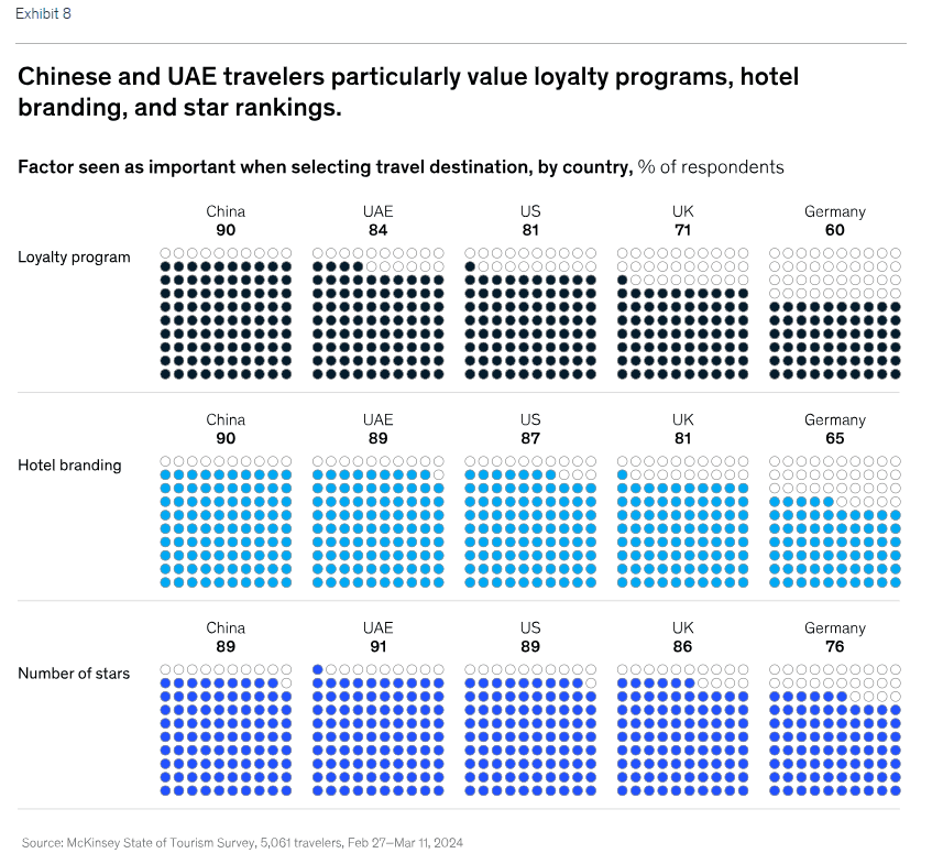 Questo è particolarmente vero per i viaggiatori di Cina ed Emirati Arabi Uniti, che attribuiscono un’importanza ancora maggiore ai brand alberghieri e ai loyalty programs rispetto ad altre regioni.